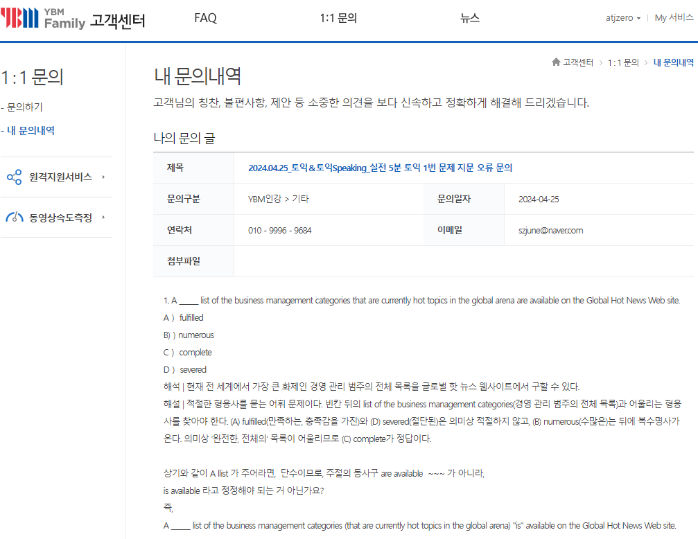 2024.04.25_토익&토익Speaking_실전 5분 토익 1번 문제 지문 오류 문의 본문