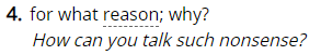 1) for what reason; why?